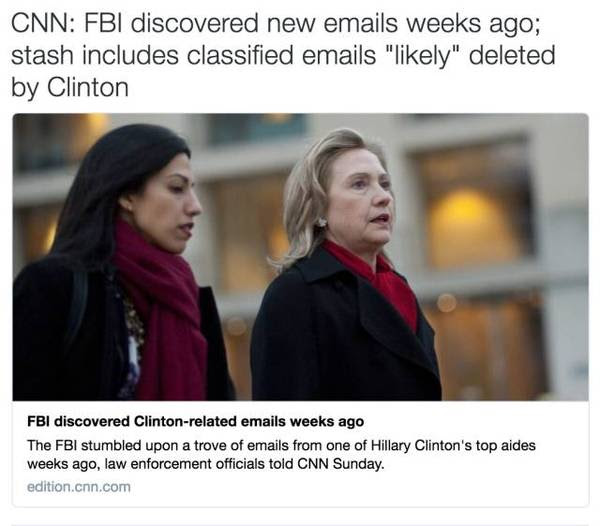 但是,就在3天前,FBI卻宣布有了新證據,將重審希拉里郵件門一事。