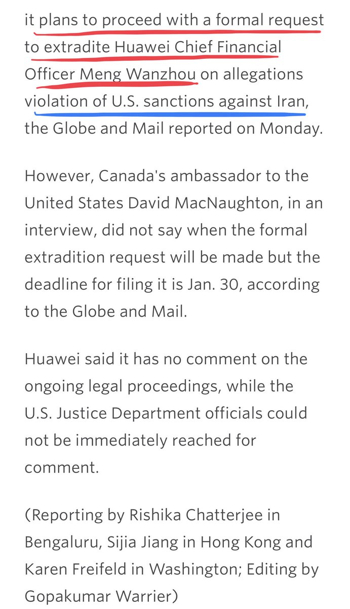 另外,美國司法部已經刑事立案起訴 #華為 刑事起訴就是說:有人要坐牢的。那麼坐牢的第一個人將是 #孟晚舟 最少30年