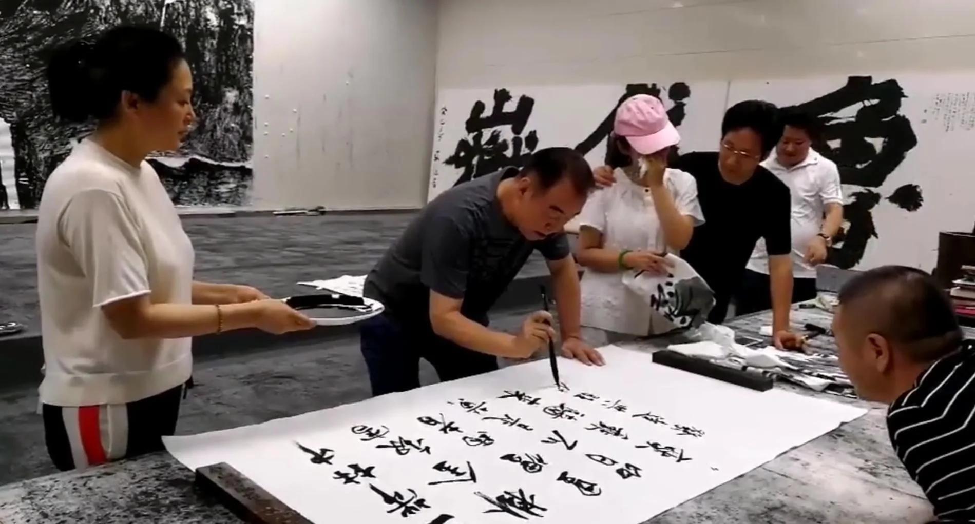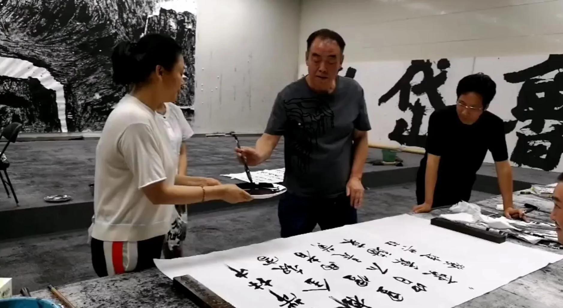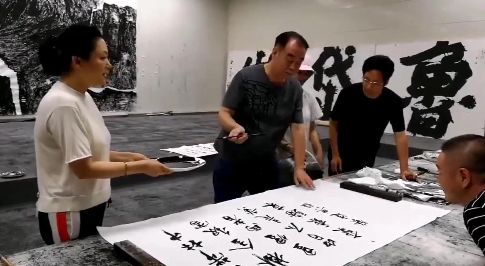 近日,有網友曬出陳凱歌陳紅同框照片,曝光了陳紅和陳凱歌的近況,從照片中可以看到67歲的陳凱歌正在書寫毛筆字,桌前擺著一副還未完成的作品,陳凱歌身穿一件深色T恤,打扮得很隨意,可以看到桌子上已經有很多污跡,看來陳凱歌平時經常練字,房間的牆上也貼了好幾張已經完成的作品,是幾個十分大的毛筆字,另一面牆上則是一副國畫,氣勢磅礴,整個房間充滿著藝術的氣息。