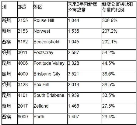 房產研究機構RiskWise Property 研究中心,進行了數據比對和分析之後,編製了一份全澳房產十大高風險地區清單,這些區公寓房樓花存量高,供過於求,風險最大。