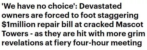 哎,辛苦賺錢好不容易買了套公寓,本以為能安居樂業過個好日子,沒想到突然天降橫禍,本不是自己的責任,又白搭進去100多萬澳幣,業主們也是鬧心啊!